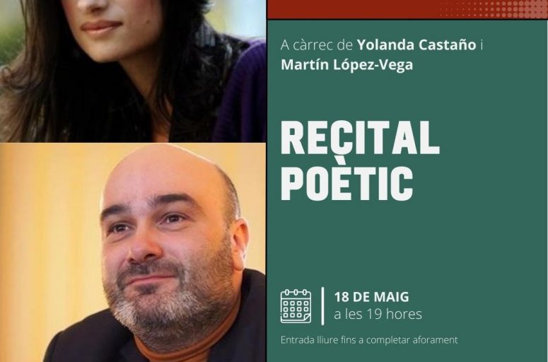 El jueves 18 de mayo no te puedes perder el recital poético a cargo de Yolanda Castaño y Martín López-Vega. La entrada es libre hasta que se complete el aforo. Jueves 18 de mayo 19:00 h. Villa Amparo. AV.Dr.Eugenio López Trigo, 7, Rocafort. (Valencia).