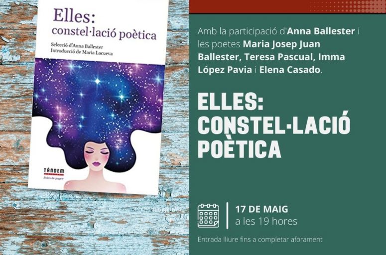 El miércoles 17 de mayo no te puedes perder la lectura y presentación del libro de poemas «Elles: Constel·lació poètica» de Anna Ballester que participará en el acto.Contaran con la participación de las poetas Maria Josep Juan Ballester, Teresa Pascual, Inma López Pavia y Elena Casado. La entrada es libre hasta que se complete el aforo. Miércoles 17 de mayo […]
