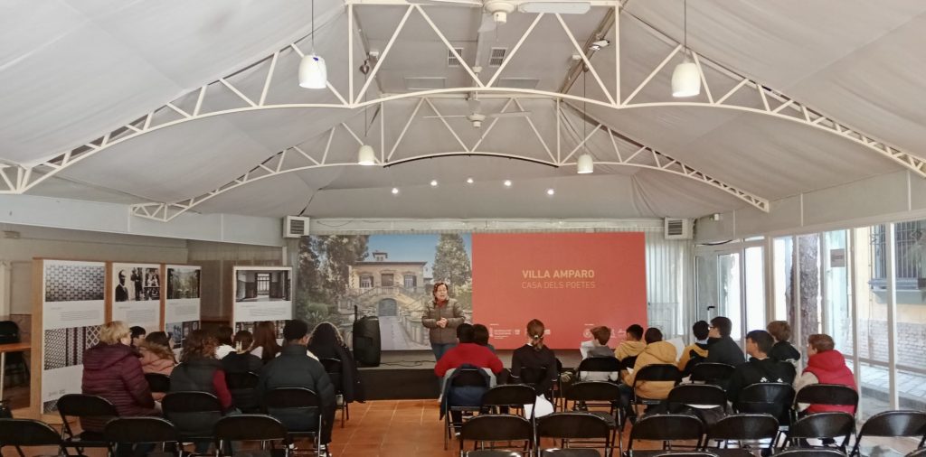 Esta mañana, 22 de febrero de 2023, de 9 a 11 h, dos grupos del colegio San Sebastián, de Rocafort, han rendido un cálido homenaje al poeta Antonio Machado en Villa Amparo. Sobre un guion previamente elaborado por el Consejo Sectorial Rocafort, Ciudad Machadiana, han recitado, en dos grupos, veinte poemas de temática infantil creados por don Antonio. No han faltado, como es lógico, poemas como Las moscas, Recuerdo infantil, Pegasos, lindos pegasos, Era un niño que soñaba, etc. Después de hacer numerosas preguntas a los dos miembros del Consejo que los acompañaban, han recorrido parte del jardín de Villa Amparo, donde han continuado saciando su curiosidad.