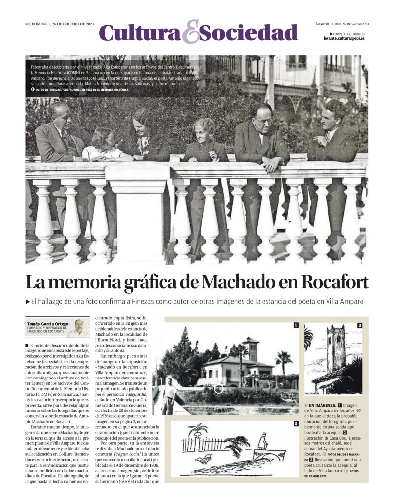 Quan, fa uns anys, elaboràvem una de les publicacions del Consell Sectorial Rocafort, Ciutat Machadiana, sobre l’estada, en plena guerra, d’Antonio Machado en Villa Amparo i sobre la realitat del nostre poble en aquella època, ens va semblar que, donada la quantitat de personalitats que van acudir a visitar-lo, seria molt interessant presentar un treball sobre les seues respectives biografies i els testimoniatges que van deixar sobre el poeta i la casa que va habitar.